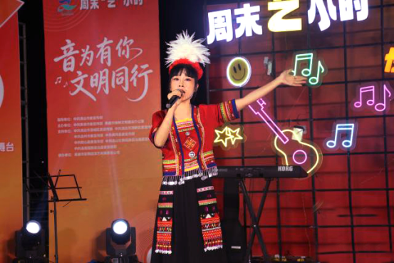 “现场群众太热情了,氛围非常好。也认识了许多优秀的老师,可以一起交流音乐和各地的文化特色。”来自连南的表演者婷婷带来歌曲《至少还有你》,今晚她还特意穿上瑶族特色服饰走上舞台,向广大市民群众展示瑶族特色文化。“欢迎大家来连南游玩,连南山美水美。”
